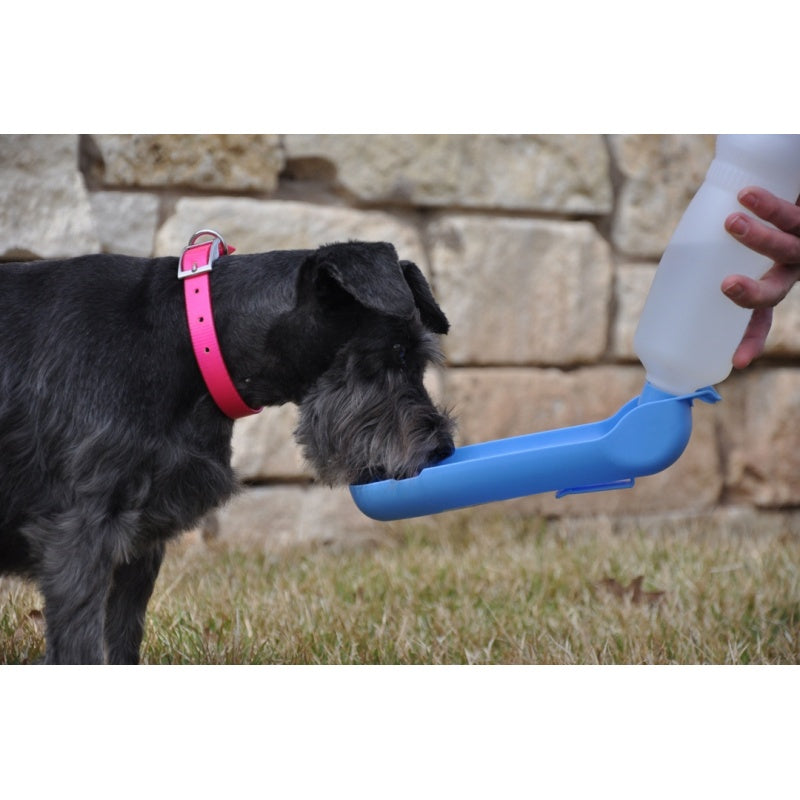 Botella y bebedero rellenable con práctico dispensador para tener agua durante los paseos con tu mascota.