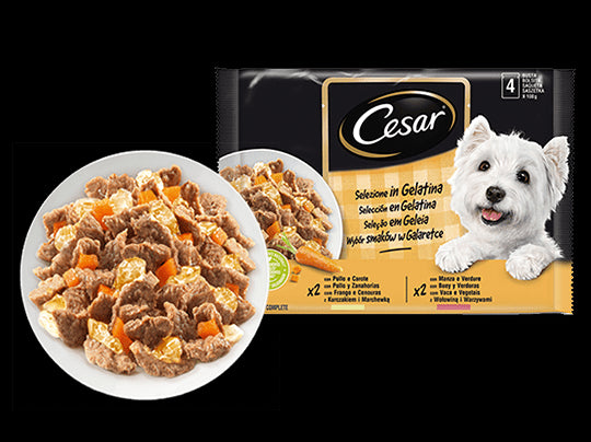 CESAR SELEC.GELAT. POLLO/ZANAH/BU 4X100GR