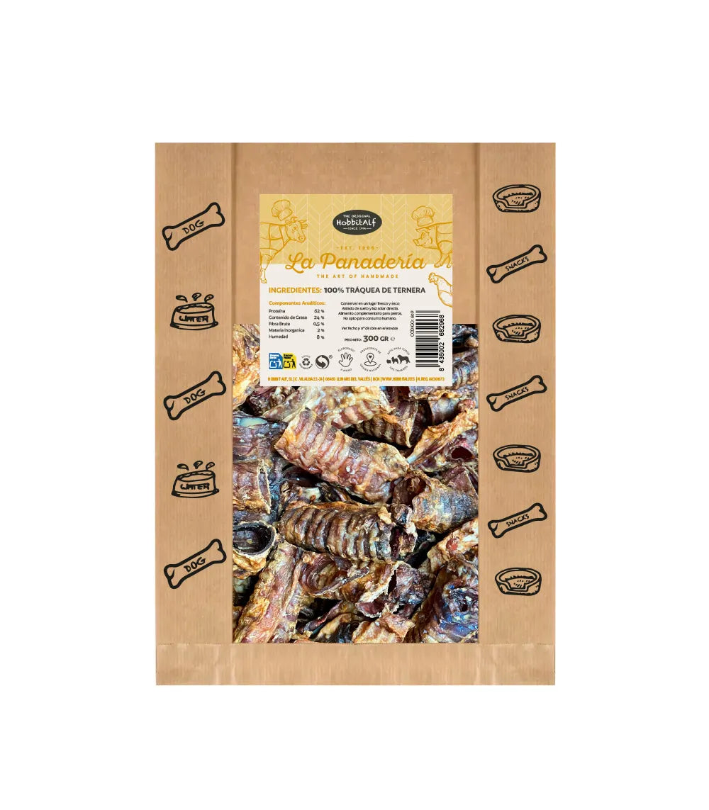 Producto natural compuesto por tráquea de vacuno deshidratada. Su textura crujiente favorece la masticación y se utiliza como complemento ocasional dentro de la dieta del perro.