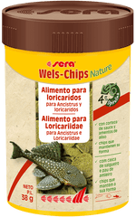 Sera Wels-Chips Nature 100 ml es un alimento principal en formato de chips diseñado para peces de fondo raspadores y succionadores como los Ancistrus y otros loricáridos. Elaborado sin colorantes ni conservantes, forma parte de la gama Nature y está orientado a ofrecer una alimentación basada en ingredientes naturales.