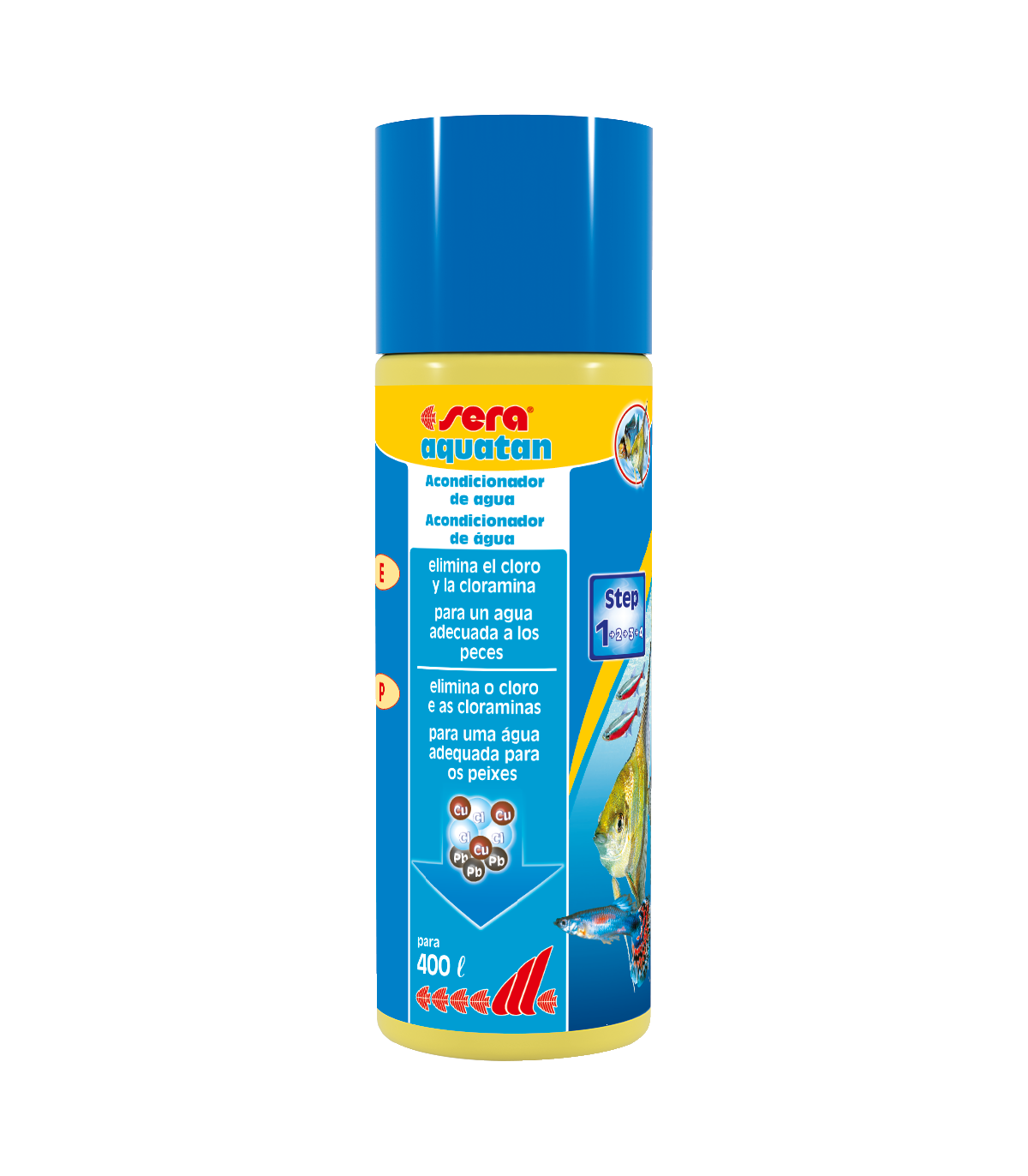 sera aquatan acondiciona el agua del grifo de forma inmediata para convertirla en un agua sana y adecuada para los peces. Elimina las sustancias nocivas, como el cloro y la cloramina, aglutina los metales pesados (p. ej. cobre, zinc o plomo) y protege contra el amoníaco. Al mismo tiempo añade importantes minerales al agua en forma biodisponible, de las que se benefician tanto los peces, como las plantas, los invertebrados y microorganismos útiles:
