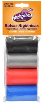 BOLSAS HIGIENICAS 4 ROLLOS DE 20 BOLSAS NEGR/PLATA/ROJO/AZ