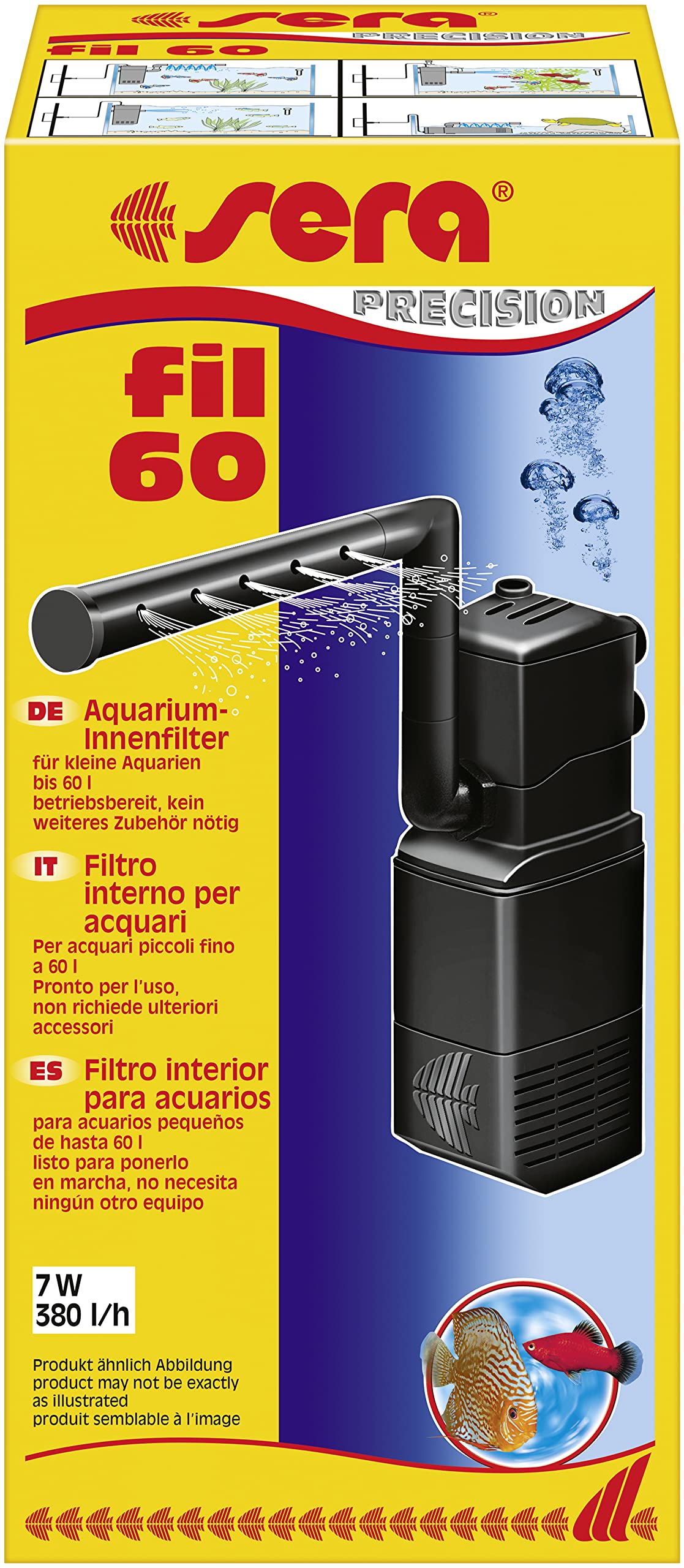 Los filtros con motor SERA fil 60 son filtros interiores para acuarios pequeños con un máximo de 60 l.
